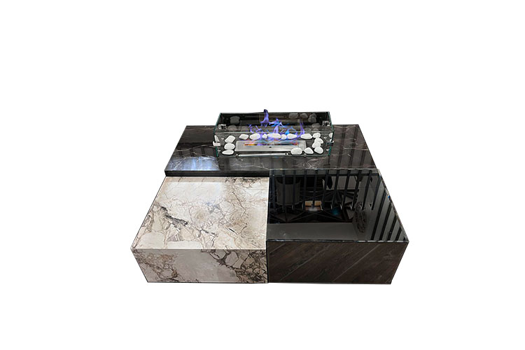 Ürünümüz 3 parçadan oluşmaktadır. 1.parça MDF üst kısmında gerçek mermer kullanılmıştır. Orta kısmında paslanmaz kir tutmaz krom metalden şömine yapılmıştır. Şöminenin etrafına alevlerden korunması için kırılmaz temperli cam kullanılmıştır.2.parça MDF full ayna kaplamadır. 3.parça MDF den üretilmiştir. Orta sehpa tamamen el işçiliği ile yapılmış olup 45 lik açı ile özenle toplanmıştır. Bütün parçalar birleştiğinde kare orta sehpa meydana gelmektedir. Ürünümüz kurulu ve paketli teslim edilmektedir.